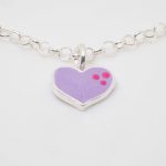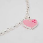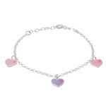 Pulsera para niña con corazones esmaltados colgantes. Es de plata 925.