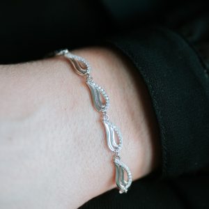 El exquisito diseño de esta pulsera complementa a la perfección con todas las piezas de nuestra Zirconia Collection. Las piezas de cubic zirconia blanca brillan en combinación con la Plata 925 de forma ideal para realizar un obsequio inolvidable.